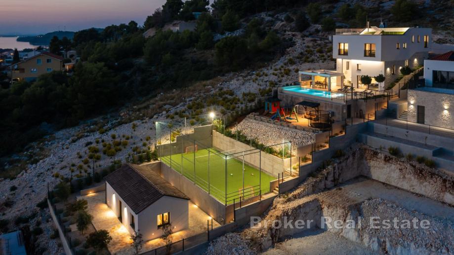 Prodaje se luksuzna vila pokraj Šibenika, udaljena samo 150 metara od morske obale. Na parceli se također nalaze pomoćni objekti, te se u sklopu prodaje nalaze jedno građevinsko i jedno poljoprivredno zemljište nasuprot glavne parcele.