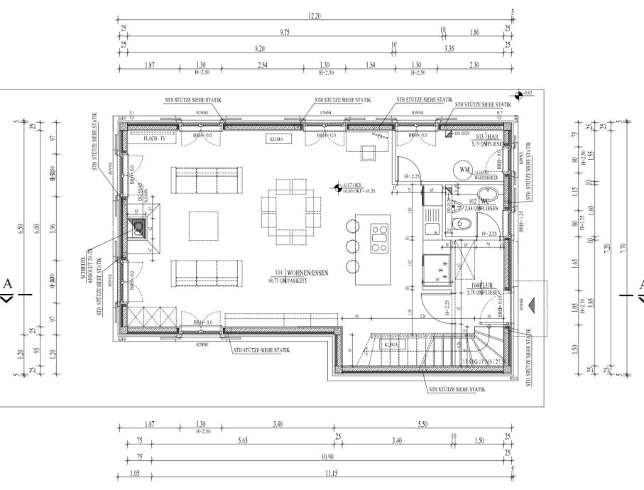 U prizemlju se nalazi veliki dnevni boravak u sklopu blagovaone i kuhinje (otvoreni koncept), sprema i kupaona.