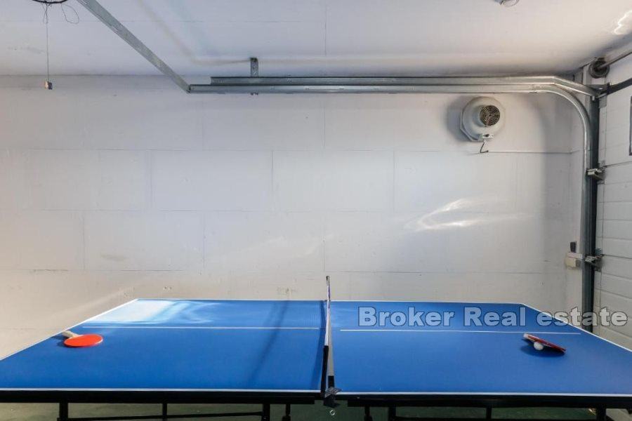 Podrum je pažljivo osmišljen kako bi udovoljio praktičnim i rekreativnim potrebama. U njemu se nalazi prostrana garaža s dovoljno mjesta za više vozila, moderni vešeraj s prostorom za pranje i sušenje rublja, kompletno opremljena teretana za rekreaciju, te prostrana kupaonica za dodatnu udobnost. Također, podrum nudi čak četiri prostrane ostave koje osiguravaju dovoljno skladišnog prostora za sve sezonske i dnevne potrepštine, čuvajući pritom ostatak doma urednim i organiziranim
