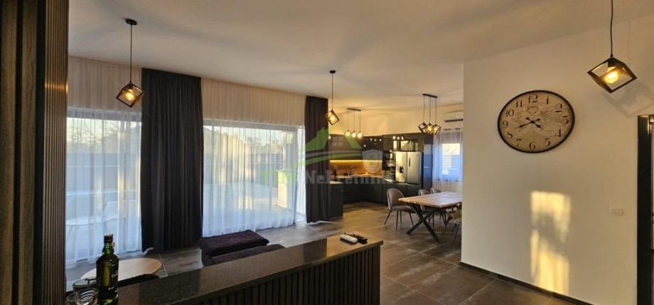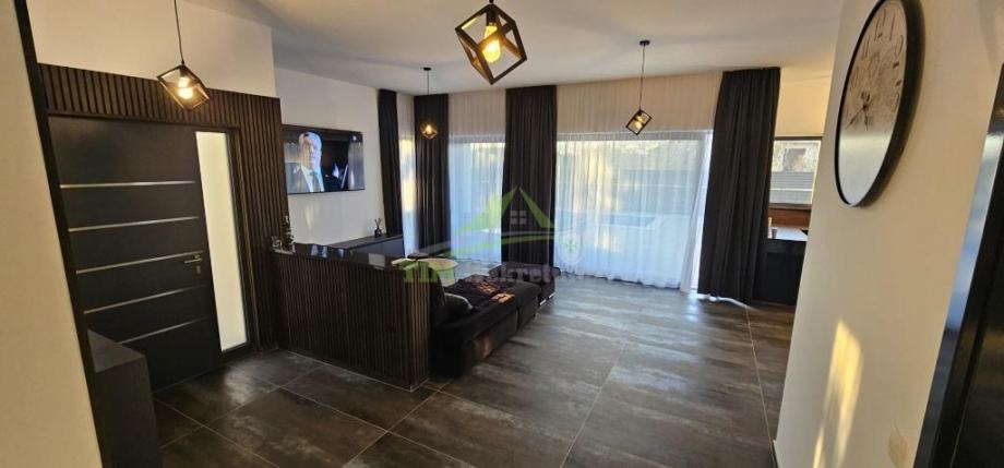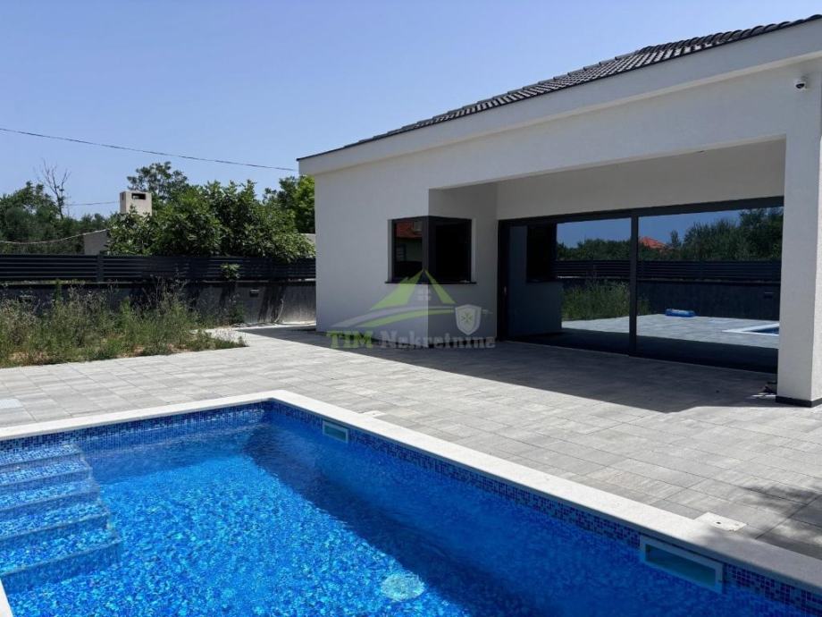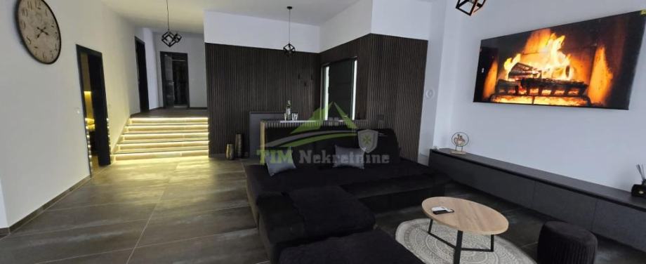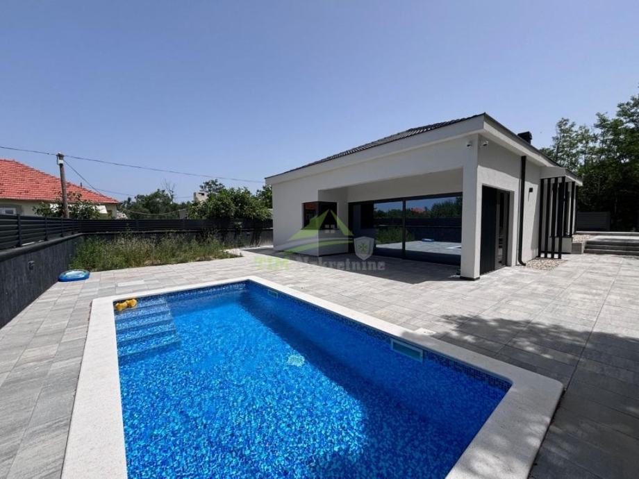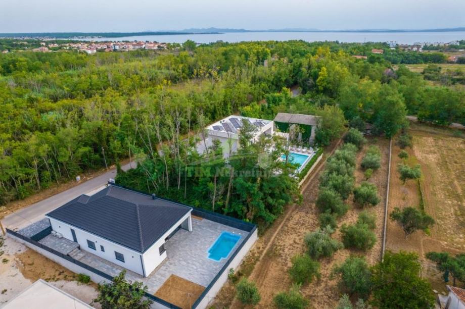 Moderna luksuzna vila površine 146.40 m2 sa bazenom površine cca 20m2 na zemljištu ukupne površine 502 m2; smještena na mirnoj lokaciji; idealna za sve koje žele mir i privatnost u lijepom okruženju; udaljena svega 1000 metara od mora i plaže.