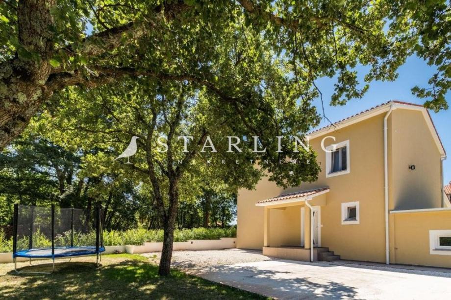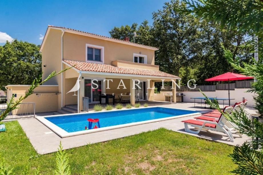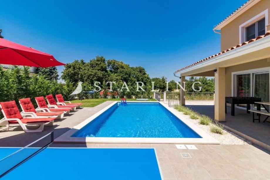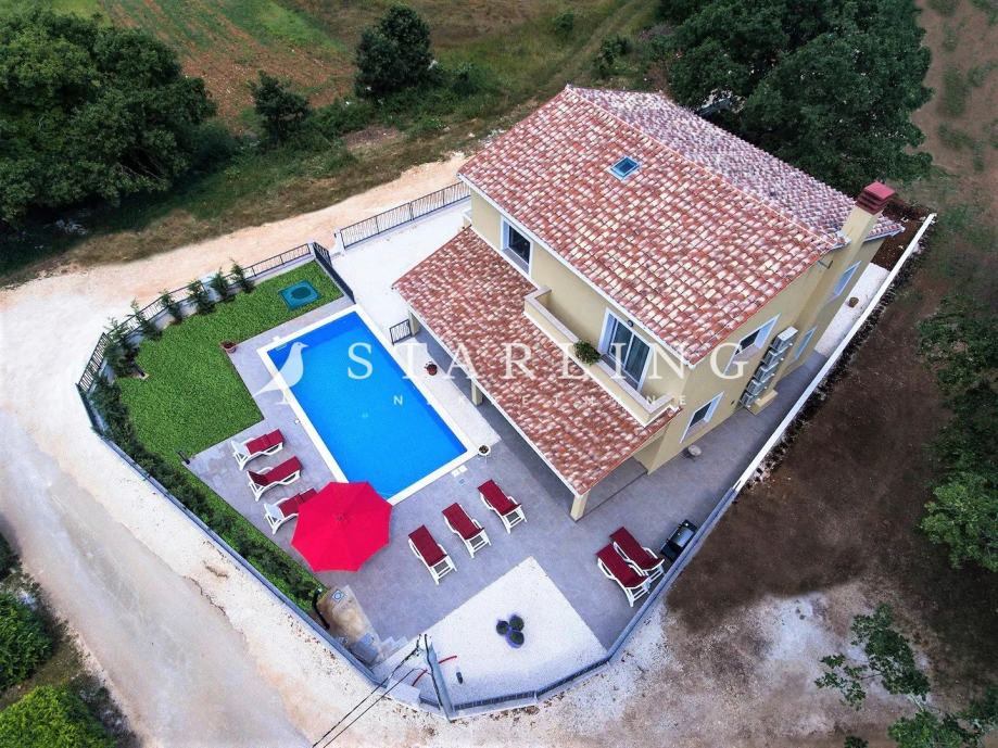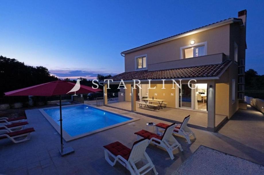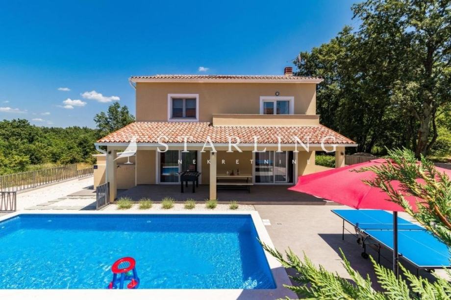 Moderna vila s bazenom smještena na mirnoj lokaciji, na samom kraju malog naselja okružena predivnom netaknutom prirodom, daje vam osjećaj posebnog ugođaja i potpune privatnosti. S druge strane, na samo nekoliko minuta vožnje nalazi se trgovina, kafić, restoran, škola i pošta.