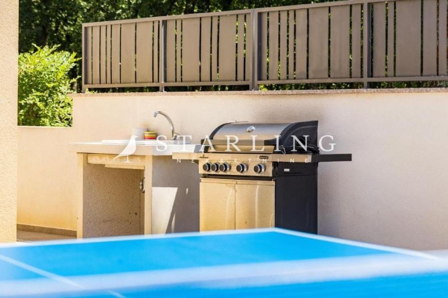 - OKUĆNICE: veliki bazen površine 34 m2, prostrana terasa s vanjskim sudoperom i roštiljem, lounge dio uz bazen, parking za dva vozila, uređena travnata površina