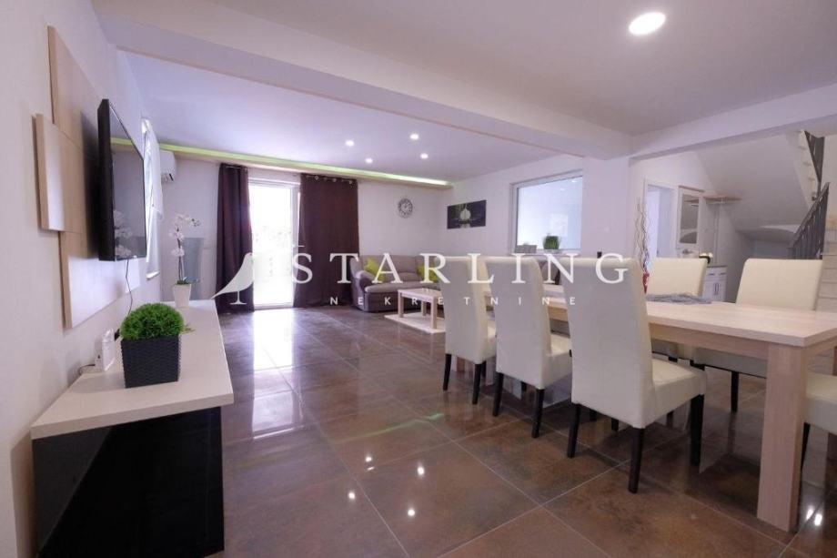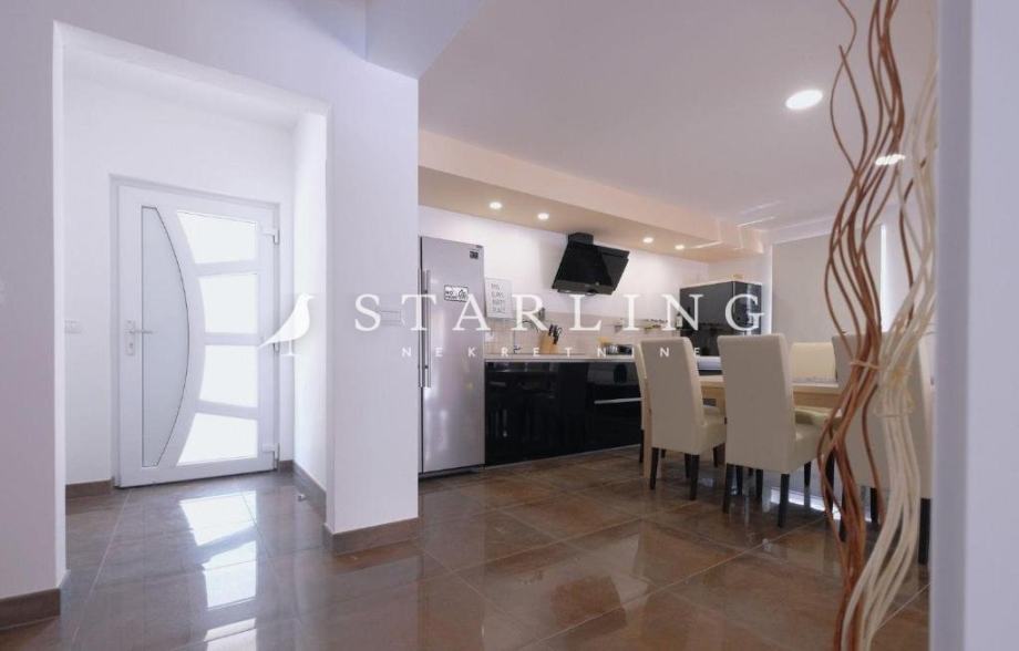 Ovu vilu krasi moderan dizajn koji omogućuje maksimalan komfor u 220 m2 stambenog prostora i 480 m2 okućnice. Izlaz iz stambenog prostora na terasu je kroz veliku staklenu stijenu koja skladno ujedinjuje interijer i eksterijer.