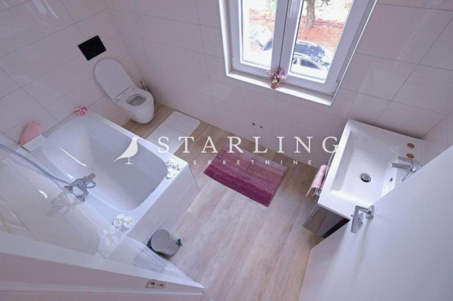- PRIZEMLJA: opremljena kuhinja s blagovaonskim stolom, dnevni boravak s izlazom na terasu bazena, spavaća sobe, kupaonica.