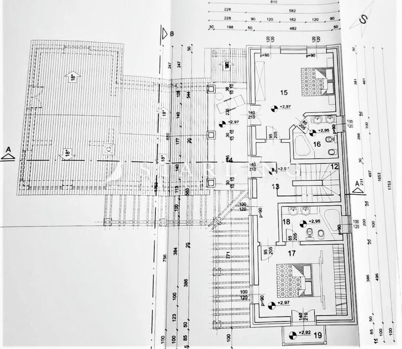 - PRVOG KATA: dvije spavaće sobe s vlastitim kupaonicama, spremište, izlaz na balkon, izlaz na terasu.