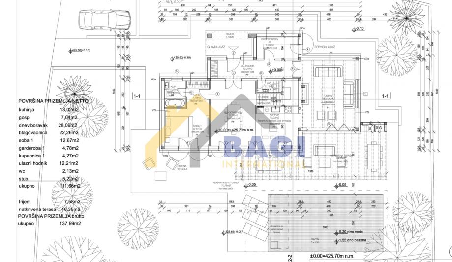 - POVRŠINA KUĆE: 170 m2 stambenog prostora + 80m2 natkrivenih terasa