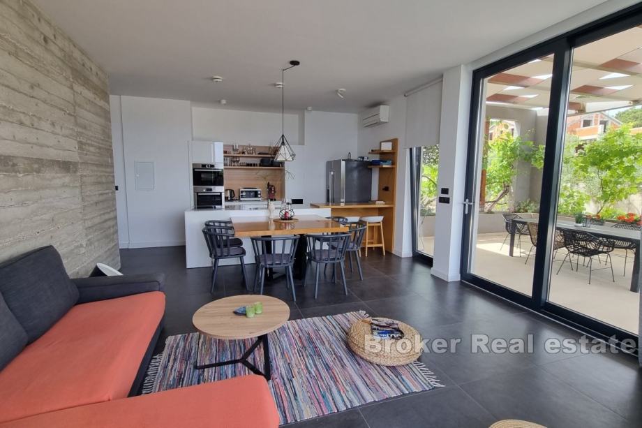 Locirana u samom centru mjesta, samo 20 m od plaže, nekretnina nudi blizinu svih sadržaja potrebnih za ugodan život. Udaljenost od trajektne luke je samo 15 minuta vožnje.