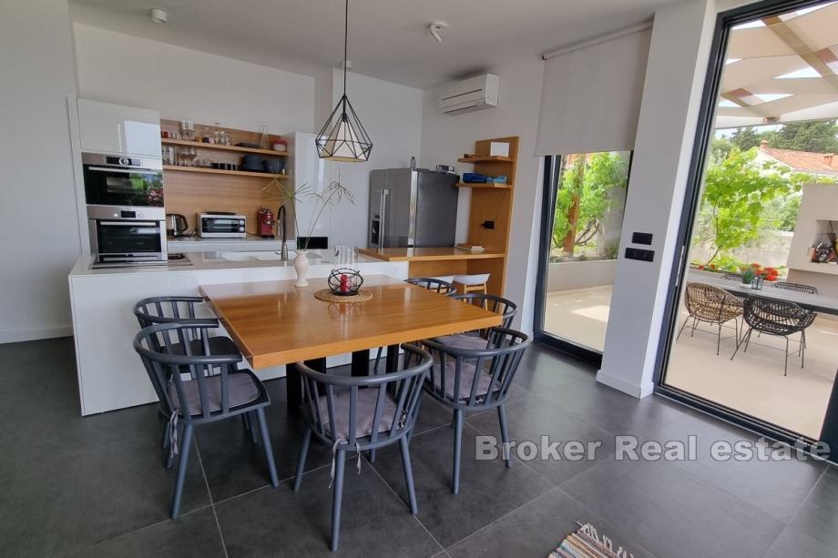 Ukupne stambene površine od 109 m2, nekretnina je smještena na zemljištu od 501 m2. Kuća sadrži kuhinju, blagovaonicu, dnevni boravak u povezanom dnevnom prostoru te dvije sobe i dvije kupaonice.