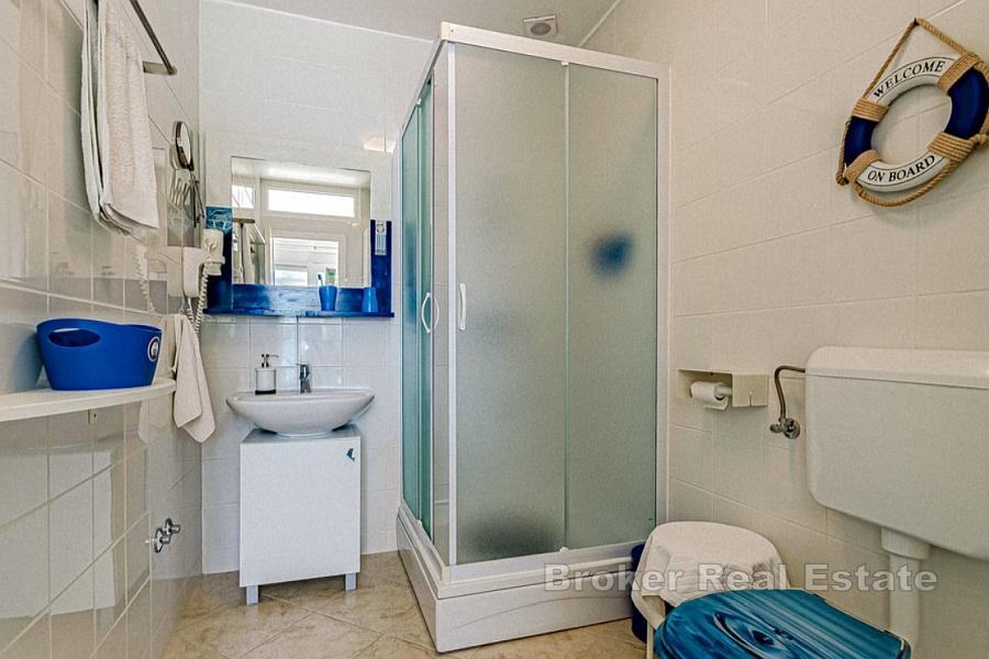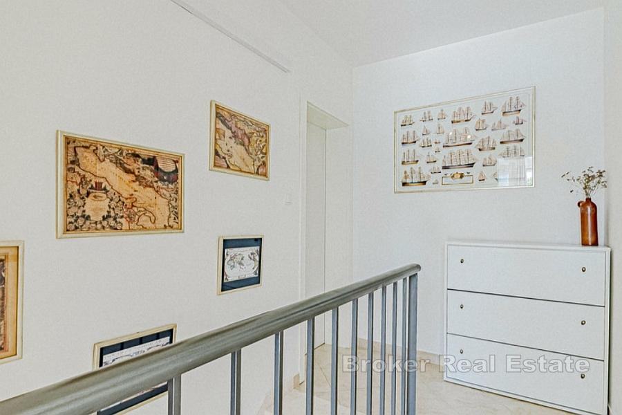 Na katu nalazimo dvije spavaće sobe, svaka s prostranom kupaonicom i balkonom (10m2) te francuskim balkonom s pogledom na more i okolne prirodne ljepote.