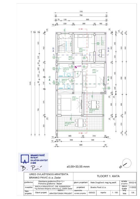 Vila je izgrađena na parceli od 441m2, ukupne stambene površine 191,7m2.