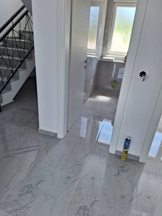 Prizemlje se sastoji od hodnika, wc-a, spremišta i praonice, kupaonica 1, kuhinja + dnevni boravak, blagavaonica sa izlazom na natkrivenu terasu.