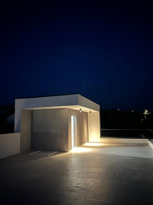 Dalje se dvokrakim stubištem dolazi na krovnu terasu koja ima natkriveni i nenatkriveni dio s mogućnošću postavljanja jacuzzija.