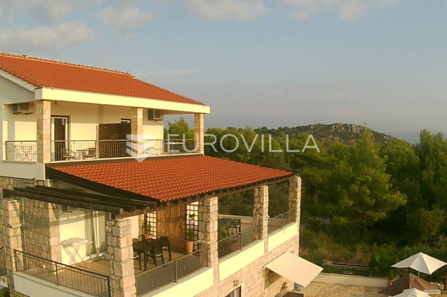Otok Šolta, kuća sa 6 apartmana sa pogledom na more stambene površine 429m2 na parceli od 906m2 u potpunosti namještena i opremljena. Sastoji se od prizemlja s 2 apartmana po 55 m2, na prvom katu 2 apartmana po 69 m2 i na drugom katu 2 apartmana po 55 m2. Ispred kuće je parking za sve...