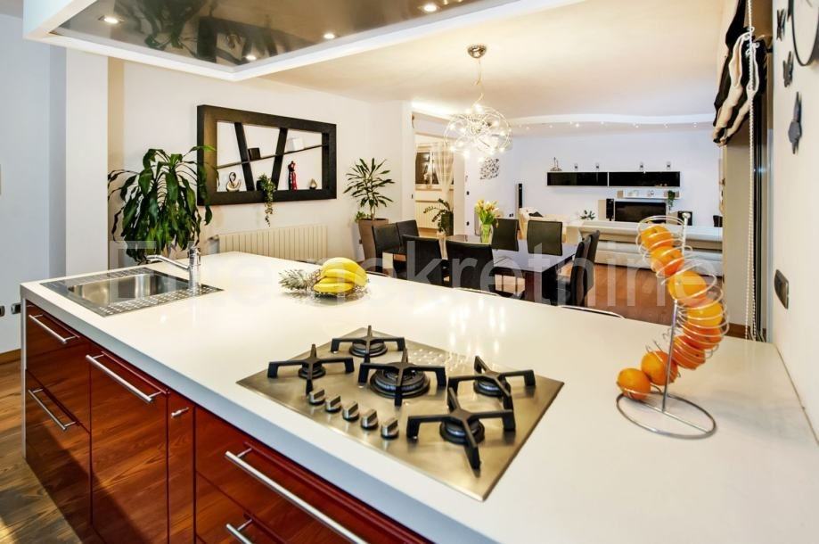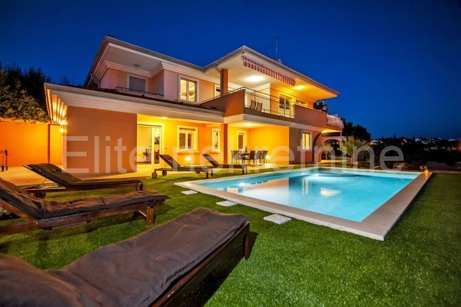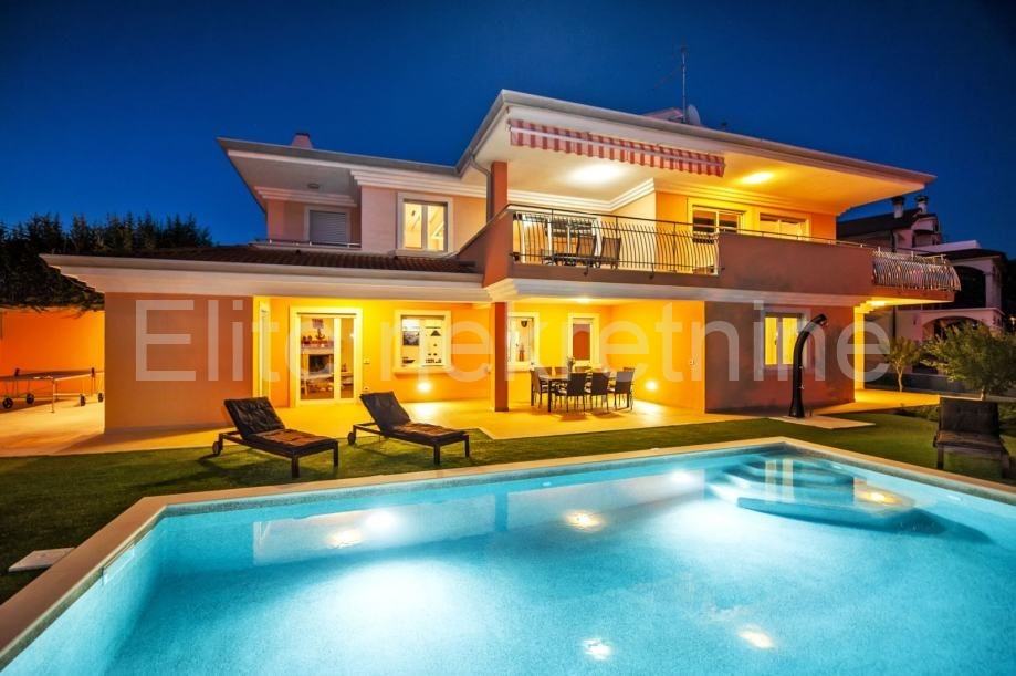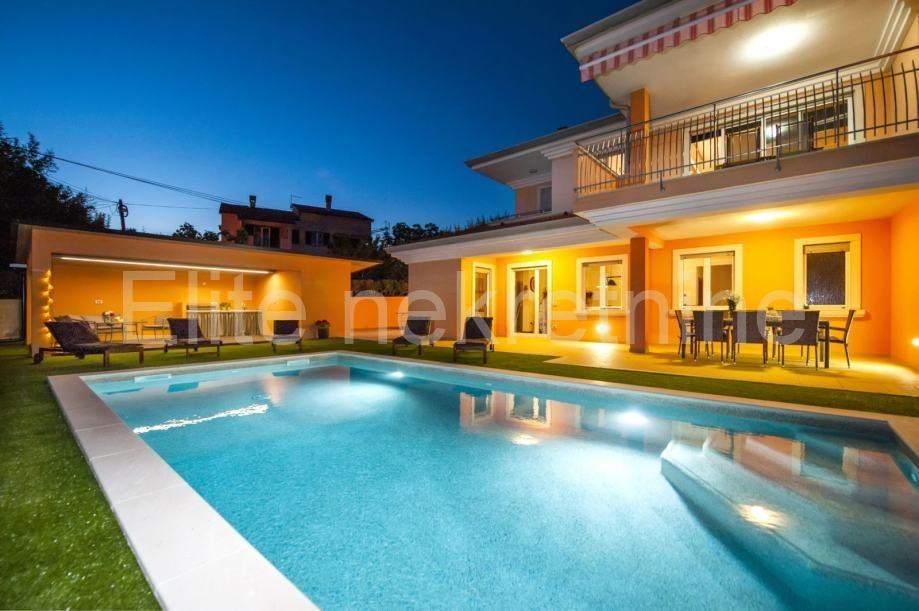 Stambena površina vile od 550 m2 proteže se na dvije etaže. Prizemlje i prvi kat s prostranim sobama i kupaonicama