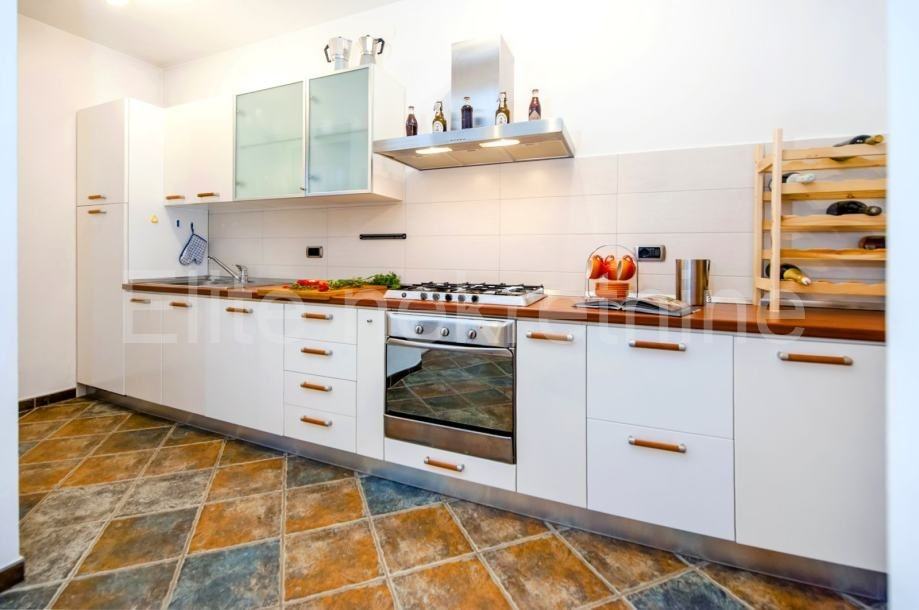 U prizemlju vile nalazi se apartman s jednom spavaćom sobom, kupaonicom, kuhinjom i dnevnim boravkomKonoba u kojoj se nalazi kamin i stol za druženje s društvom, ujedno konoba ima i direktan izlaz na bazen s sunčalištem