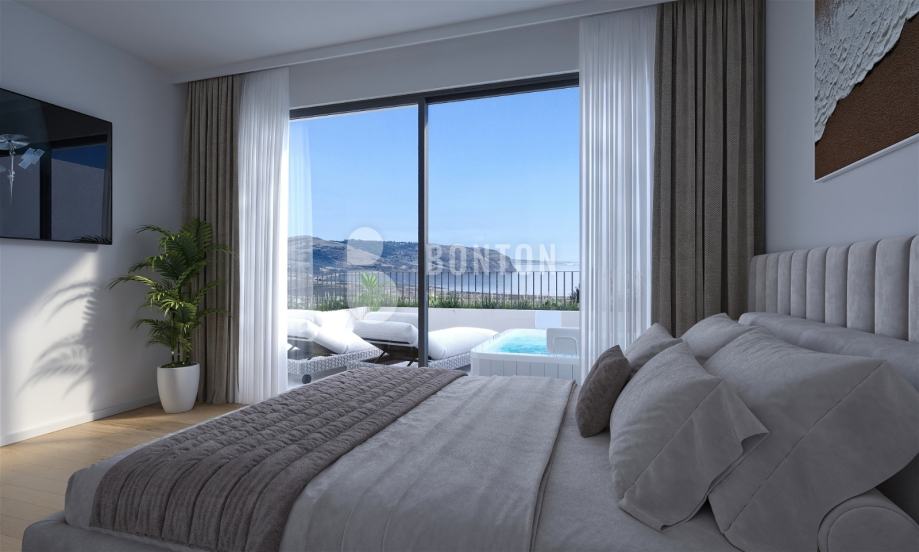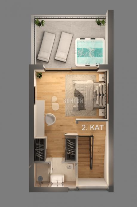 Na drugom katu nalazi se Treća Spavaća soba s kupaonicom...... Na terasi nalaze se postavljene instalacije za Jakuzzi..Terase će biti sagrađene od Betona te Ogradno staklo koje će pružati dovoljno svijetla te otvoreni pogled na Lagunu