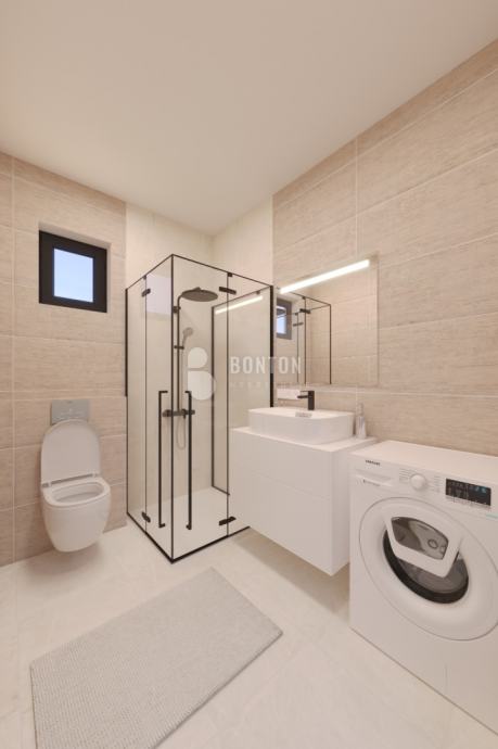 Gradnja ove nekretnine izvršit će se punim betonom.Fasada će imati termo izolaciju debljine 10 cm. Prozori su od PVC materijala Antracit boje s troslojnim staklom .Podne obloge visokokvalitetne pločice .Svi prostoru su klimatizirani.
