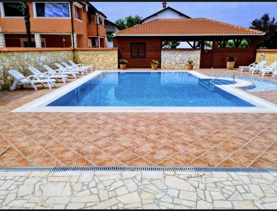 Prodaje se vila sa sedam apartmana, u kompletu s odvojenim objektom uz vilu koji se sastoji od dvije sobe s kupaonicama uz svaku sobu, sve na atraktivnoj lokaciji u naselju Zambratija udaljenom od grada Umaga svega 4 km i 300 m od plaže. U prizemlju vile nalaze se dva studio apartmana i jedan trosobni apartman, na 1. katu trosobni i četverosobni apartman i na 2. katu dva četverosobna apartmana. U podrumu objekta nalazi se praonica rublja i veliko spremište. Svi apartmani su klimatizirani i imaju radijatorsko grijanje na plin.