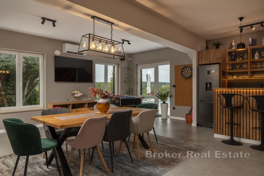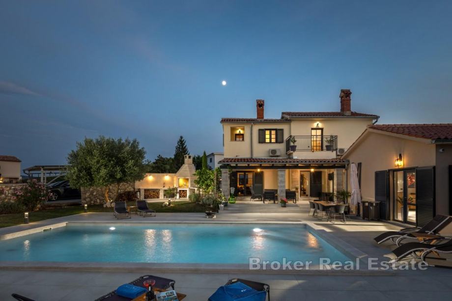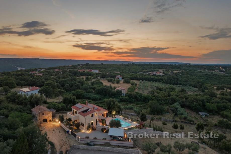 S očaravajućim panoramskim pogledom na Park prirode Učka, te na samo petnaest minuta vožnje od prvih plaža, ova vila spoj je elegancije i autentičnog šarma Istre. Nadahnuta tradicionalnom arhitekturom, u njenoj su izgradnji korišteni samo najkvalitetniji prirodni materijali te je, kao takva, dosegla savršen sklad tradicije i luksuza.