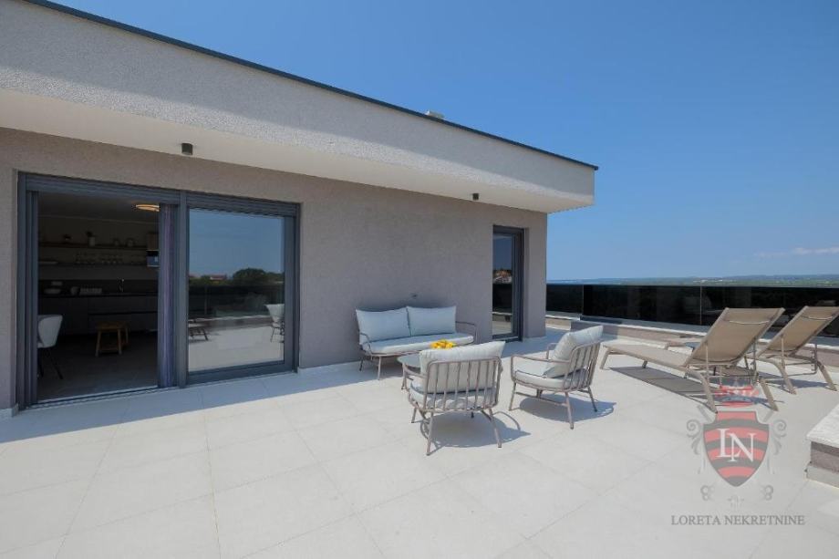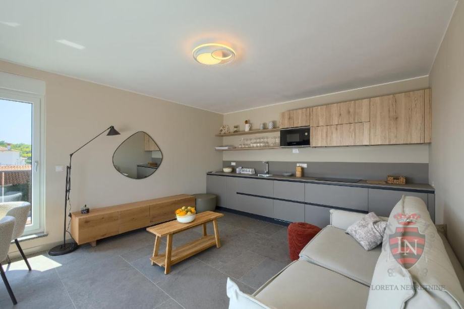 Na drugom katu je studio apartman - dnevni boravak s kuhinjom i kupaonicom koji može služiti kao i soba s obzirom da ima kauč na razvlačenje. Tu se nadovezuje velika terasa s pogledom na Brijune. Kuća je orijentirana prema istoku i sjeverozapadu.