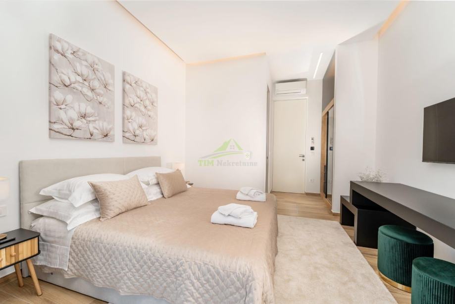- u potpunosti opremljena te namještena namještajem rađen po mjeri
