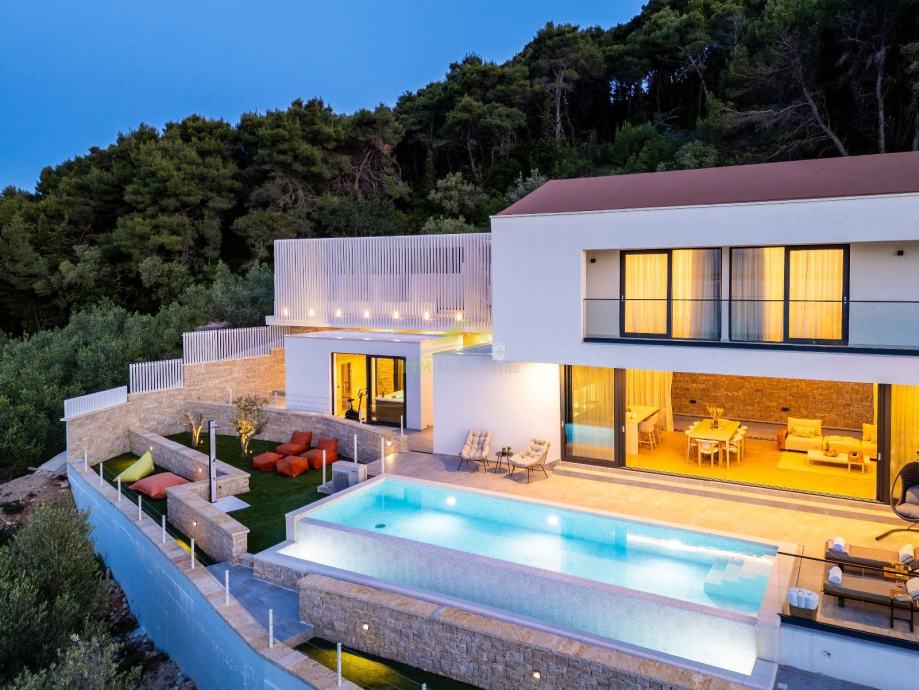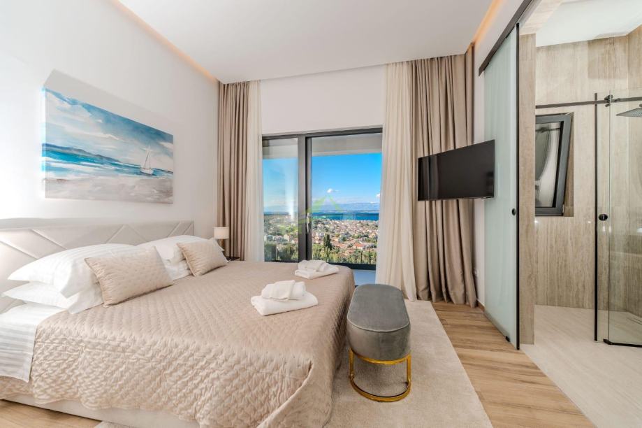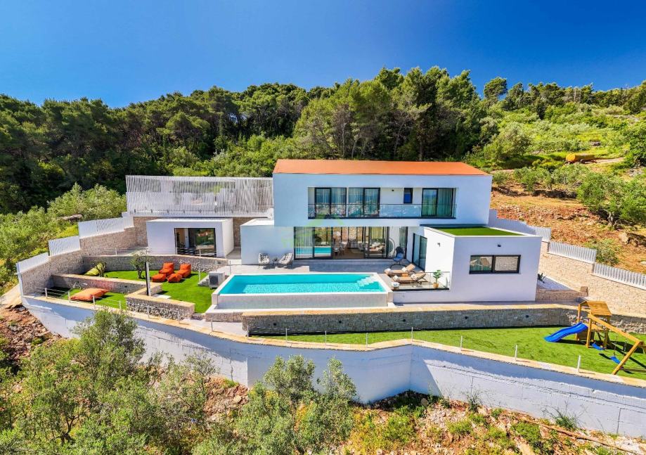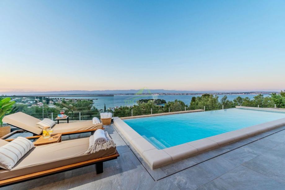 Prekrasno novoizgrađena vila koja udiše vrhunskim luksuzom smještena na izuzetno atraktivnoj lokaciji u Preko na otoku Ugljanu; sa koje se pruža prekrasan panoramski pogled na more te grad Zadar.