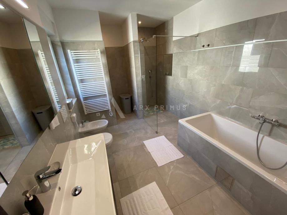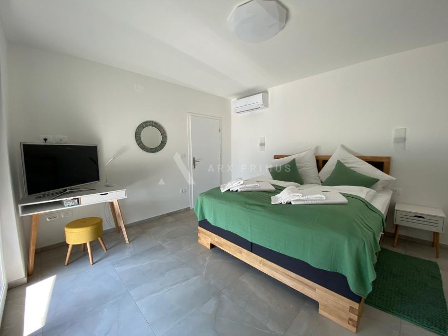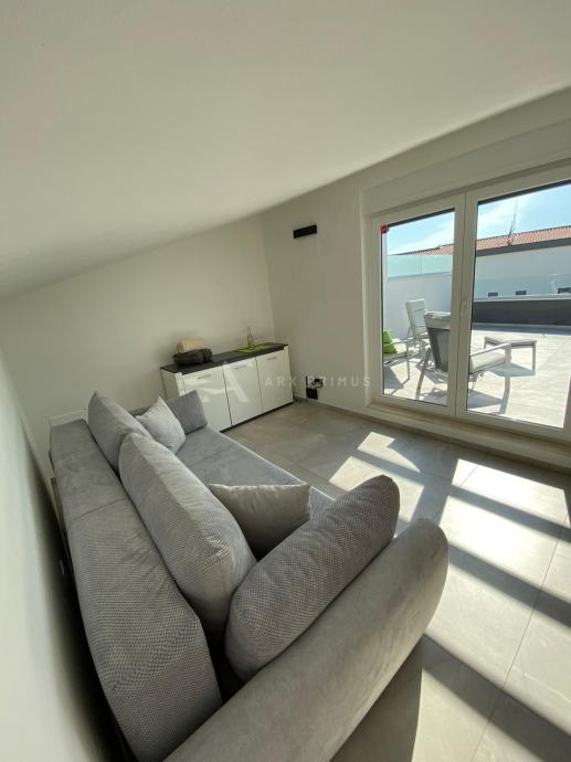 Mansarda 21 m2: soba s izlazom na veliku krovnu terasu površine 50 m2 s koje se pruža pogled prema moru, na terasi je predviđena instalacija za postavljanje jacuzzija.