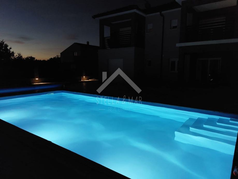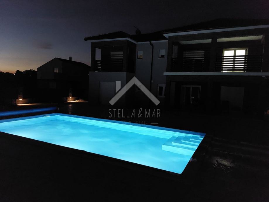 Prodaje se predivna Vila sa bazenom u Murvici kraj Zadra. Kuća se nalazi na idealnoj lokaciji, miran predio naselja, idealno za odmor. Površina zemljišta na kojem je sagrađena ova prekrasna vila iznosi 1.114 m2, a stambena bruto površina po etaži 165m2, ukupno 330m2. Kuća je na dva kata, u prizemlju se nalazi veliki moderno opremljen dnevni boravak, blagovaonica, kuhinja, kupatilo i jedna spavaća soba sa wc-om. Velika terasa koja se nalazi tik uz bazen, opremljena sa vrtnim namještajem i ležaljkama. Na katu kuće se nalaze tri spavaće sobe sa kupatilima, sve namješteno i moderno opremljeno. U svakoj sobi ima klima uređaj. Svaka soba ima prostranu terasu. Svaka soba ima televiziju. Aluminijska stolarija na cijeloj kući. Oko kuće se nalazi prekrasna okućnica sa bazenom, dječijim igralištem ( trampolin itd ), igralištem za odrasle, veliki kamin i pored njega velika terasa za cca 30 osoba. Bazen je veličine 10+5 m. Kuca ima videonadzor, prekrivena je sa 8 kamera. Prekrasna ograda sa kojom je ograđeno cijelo dvorište. Vlasništvo uredno. Građevinska dokumentacija kompletna.