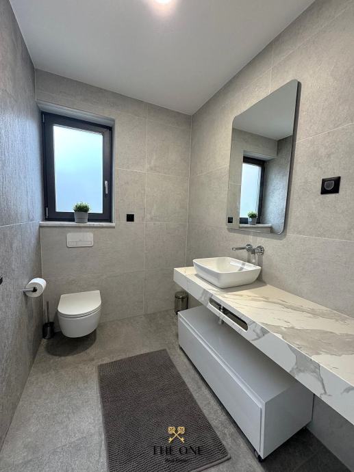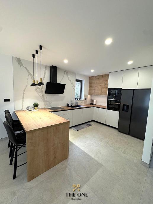 Aluminijska i PVC stolarija osiguravaju izvrsnu toplinsku i zvučnu izolaciju, dok je kuća unaprijed pripremljena za instalaciju solarnih panela. Energetski razred jamči visoku energetsku učinkovitost, a dva vanjska parkirna mjesta dodatno doprinose praktičnosti ove luksuzne nekretnine.