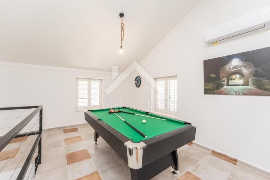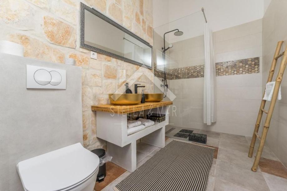 Kuća je izgrađena 2022. godine, priključena na gradsku vodu i kanalizaciju. Sastoji se od prizemlja i kata unutar koji su tri spavaće sobe, tri kupaonice, kuhinja sa blagovaonicom, dnevni boravak, hodnik i prostrana terasa. Kuća je potpuno namještena sa modernim i kvalitetnim namještajem te se kao takva i prodaje.