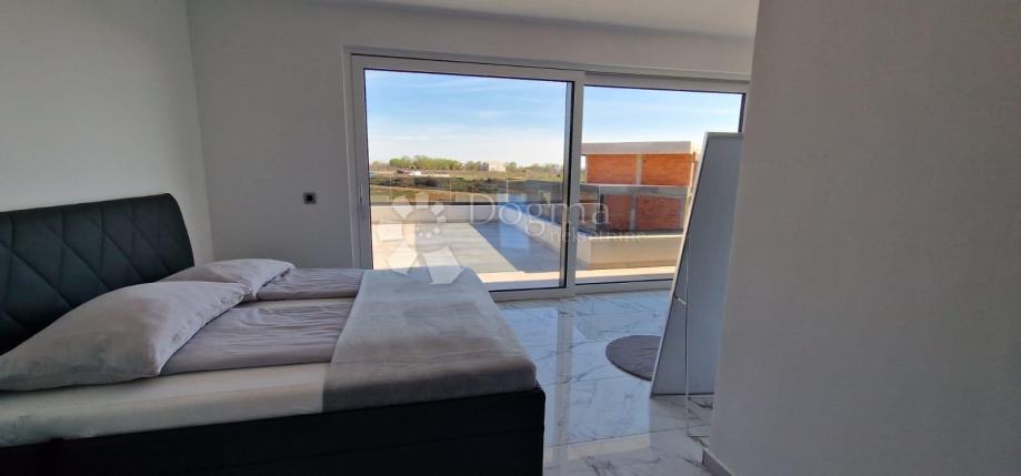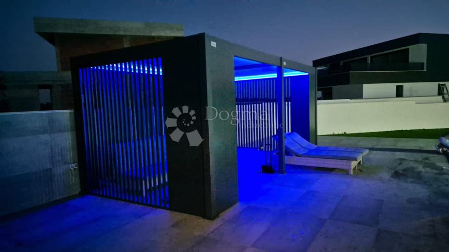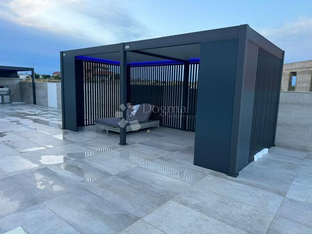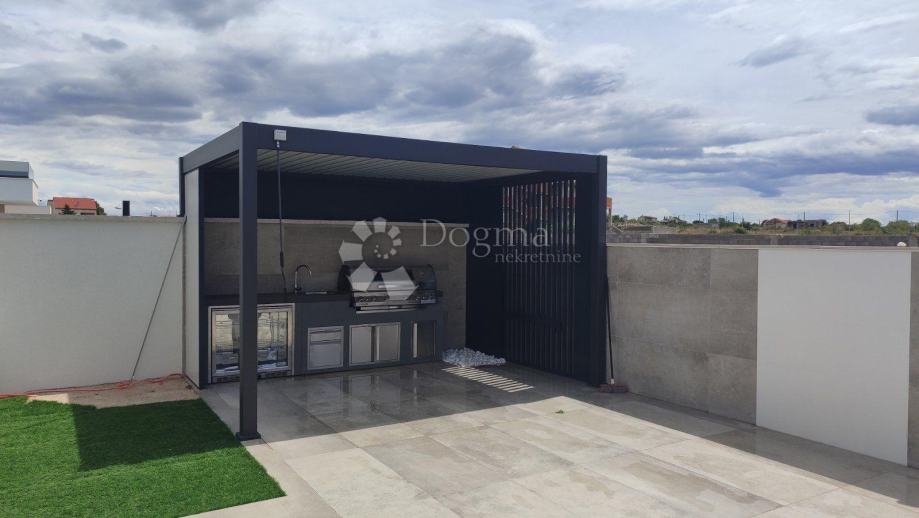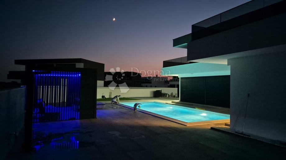 Prodaje se predivna luksuzna vila, potpuno namještena s četiri sobe, svaka s vlastitom kupaonicom, grijanim bazenom te prostranom okućnicom od 780 m2 u mirnom mjestu Zemunik Gornji, udaljenom 12 km od Zadra i mora. Ova lokacija idealna je za opuštanje i uživanje u privatnosti.