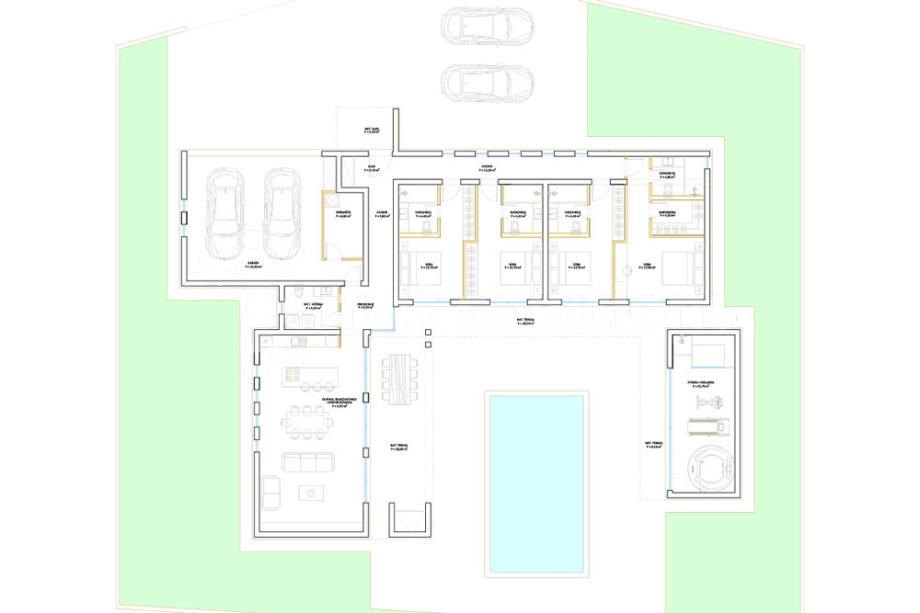 Sastoji se od natkrivenog ulaza, ulaza, dva hodnika, spremišta, garaže za dva automobila, predsoblja, wc-a i vešeraja, kuhinje, blagovaonice i dnevnog boravka, četiri spavaće sobe, svaka s vlastitom kupaonicom, garderobom, prostorom za fitness i wellness, i tri natkrivene terase. Vila ima bazen sa sunčalištem, uređenu okućnicu i dva parkirna mjesta.