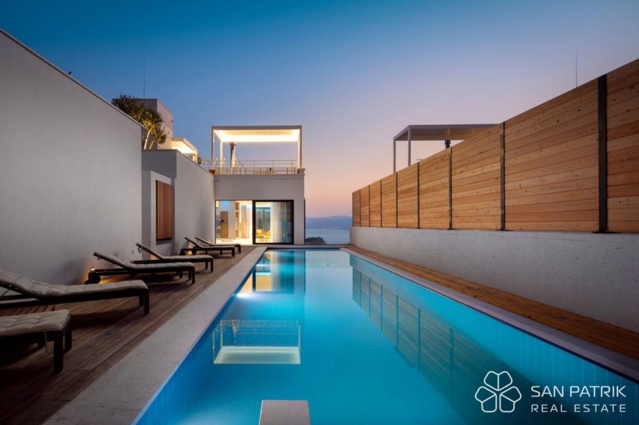 Vila Bura – prizemlje + 2. kata + krovna terasa – površina 297 m2 (3 spavaće sobe + 3 kupaonice + 7 terasa + wellnes zona + teretana + bazen + krovna terasa) + 8 parking mjesta = 1.600.000 EUR