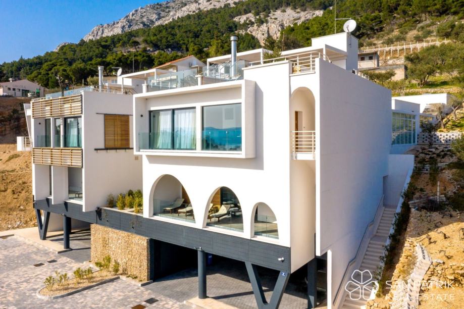 Dvije raskošne vile s panoramskim pogledom smještene su na parceli ukupne površine 2.253 m2 udaljenoj 200 metara od mora. Moguće je kupiti obje vile zajedno, ili svaku zasebno.