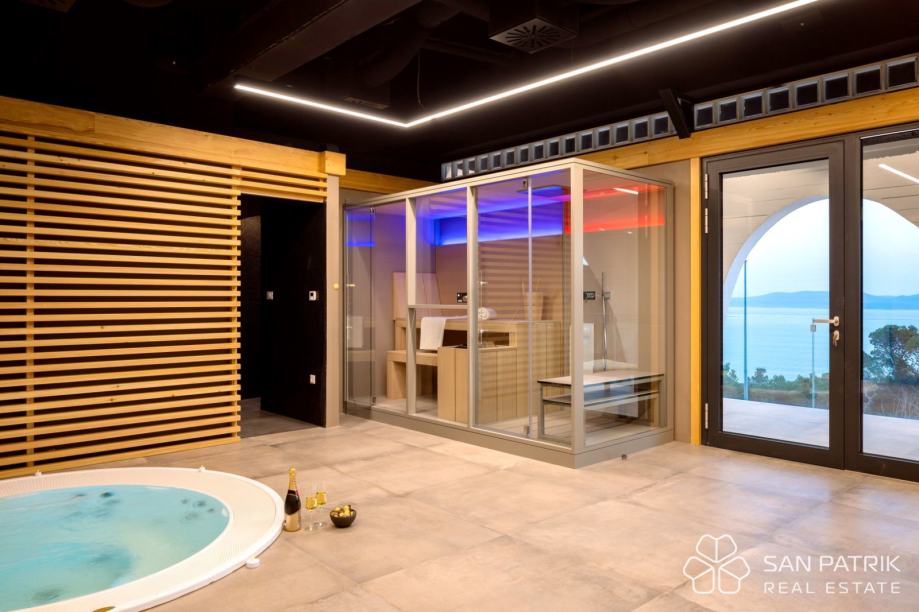 Prvi kat je posvećen revitalizaciji i wellnessu. Iskusite privatnu spa oazu s hamamom, saunom, i tušem koji pružaju doživljaj kakav zaslužujete. Hidromasažni jacuzzi za šest osoba nudi vam luksuz opuštanja u intimi vlastitog doma, a teretana s vrhunskom opremom poziva vas na održavanje forme uz stil.
