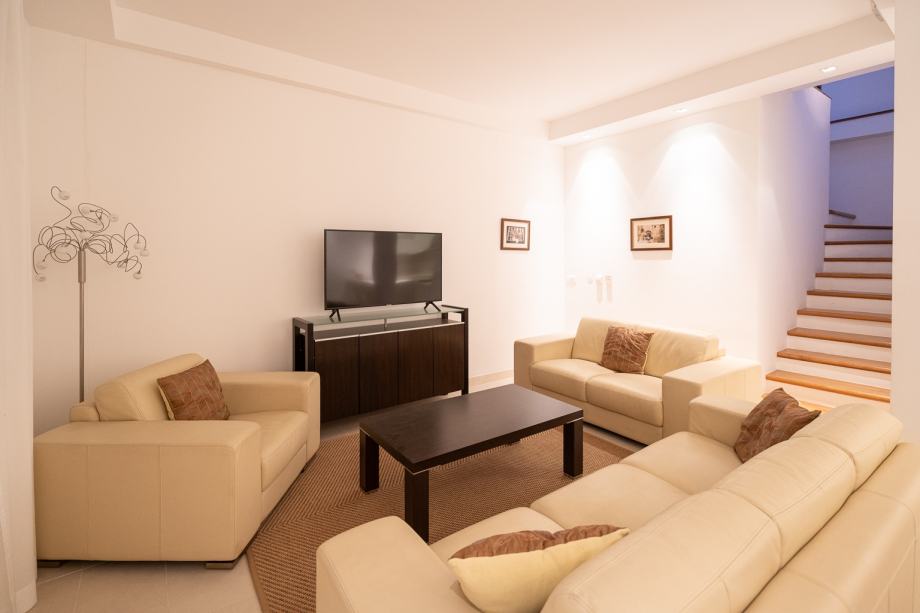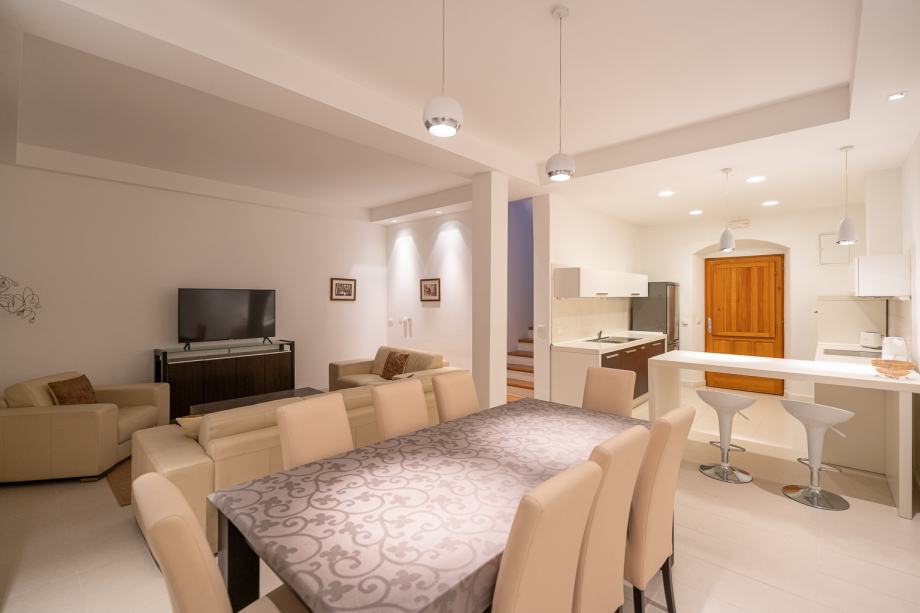Nudimo na prodaju vilu površine 259 m2, smještenu u Čajkovićima. Sastoji se od tri namještena jednosobna i jednog dvosobnog, dvoetažnog apartmana. Okućnica površine 206 m2 obuhvaća bazen, natkrivenu ljetnu kuhinju i terasu.
