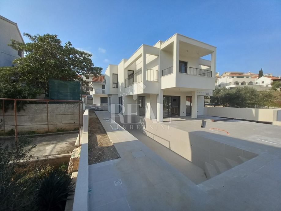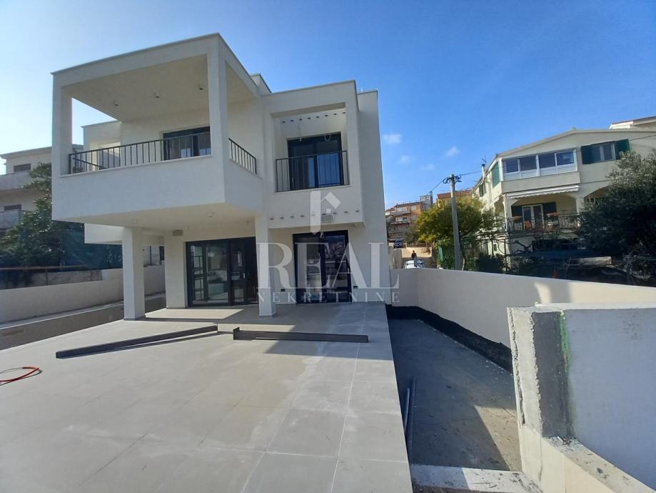 Otok Čiovo 50 m od mora novoizgrađena vila s pogledom i bazenom. Nekretnina izrađena po najnovijim standardima i s najkvalitetnijim materijalima , trenutno u posljednoj fazi izgradnje što znači uređenje samog okoliša te uređenje interijera te će biti spremna za nadolazeću sezonu. Nekretnina se sastoji od suterena u kojem je garaža , gostinjska soba te ostava u kojoj se nalazi dizalica topline također najbolja na današnjem tržištu. Unutarnjim stepeništem se penjete na prizemlje u kojem se nalazi tlocrtno otvoreni dnevni boravak, kuhinja s blagovaonicom te izlaz na prostranu terasu pored koje je bazen. Na katu su se smjestile tri master sobe od kojih svaka ima svoj balkon i pogled na more. Kupac ne plača porez na nekretninu. Nekretnina idealna za investiciju u turističke svrhe , vrijedna pažnje.