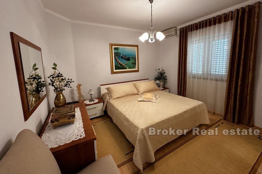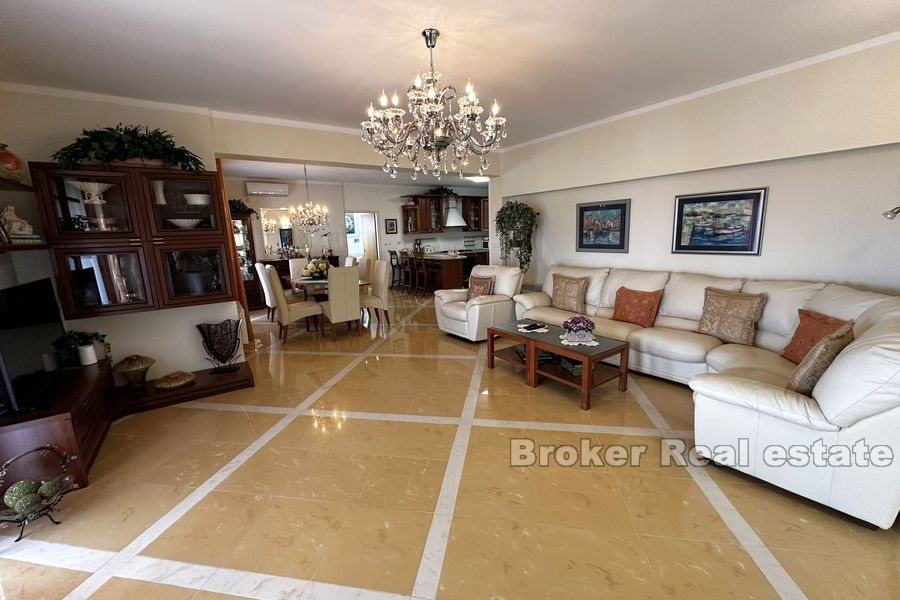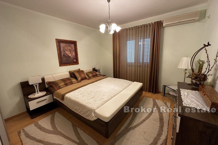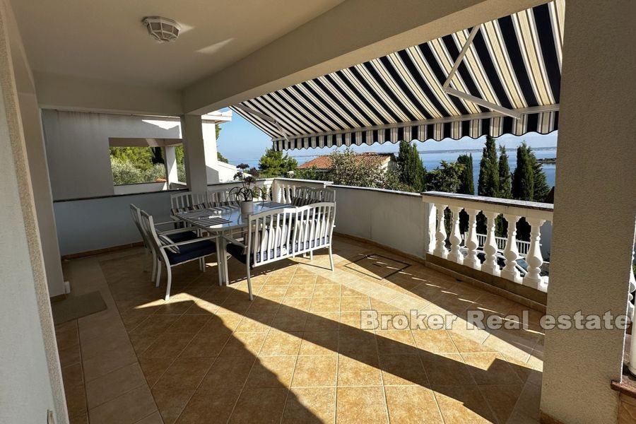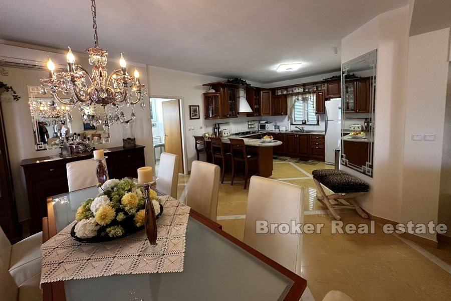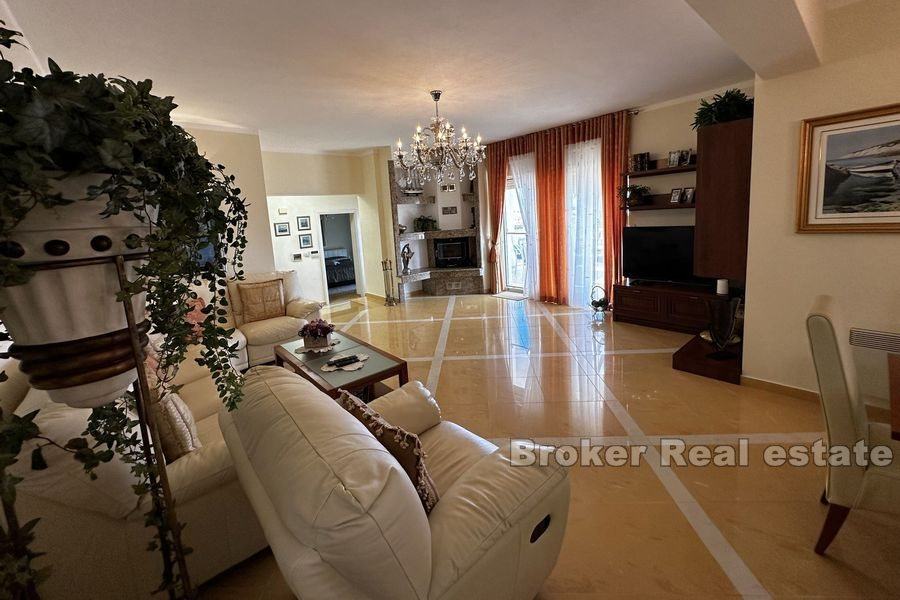 Vila se proteže na dvije etaže. Prizemlje se sastoji od velike kuhinje, blagovaonice, dnevnog boravka, 3 sobe od kojih svaka ima svoju kupaonicu te velike spreme. Iz prostranog dnevnog boravka izlazi se na veliku terasu sa pogledom na more. Terasa sadrži roštilj i dovoljno mjesta za ugodno druženje u lijepom ambijentu.