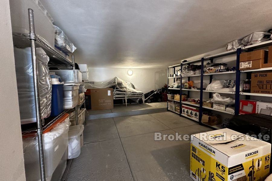Kroz garažu koja je dovoljna za dva velika automobila ,ulazi se u veliki podrum koji ima puno skladišnog prostora.