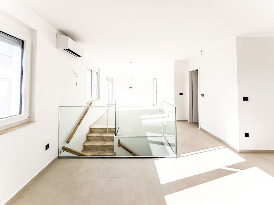 Radi se o suvremeno dizajniranoj nekretnini koja pruža iznimnu udobnost, vrhunsko korisničko iskustvo, visoku privatnost te neposrednu blizinu mora. Stan je raspoređen u prizemlju, prvom katu i na krovu terasi, a povezan je unutarnjim stubištem koje vodi od podruma do krova terase.