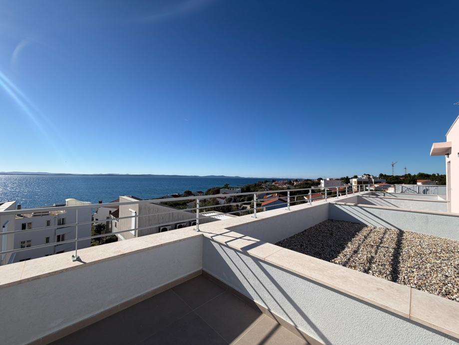 PETRČANE – LUKSUZNI DVOETAŽNI STAN S VRTOM, BAZENOM I POGLEDOM NA MORE, samo 80 metara od plaže