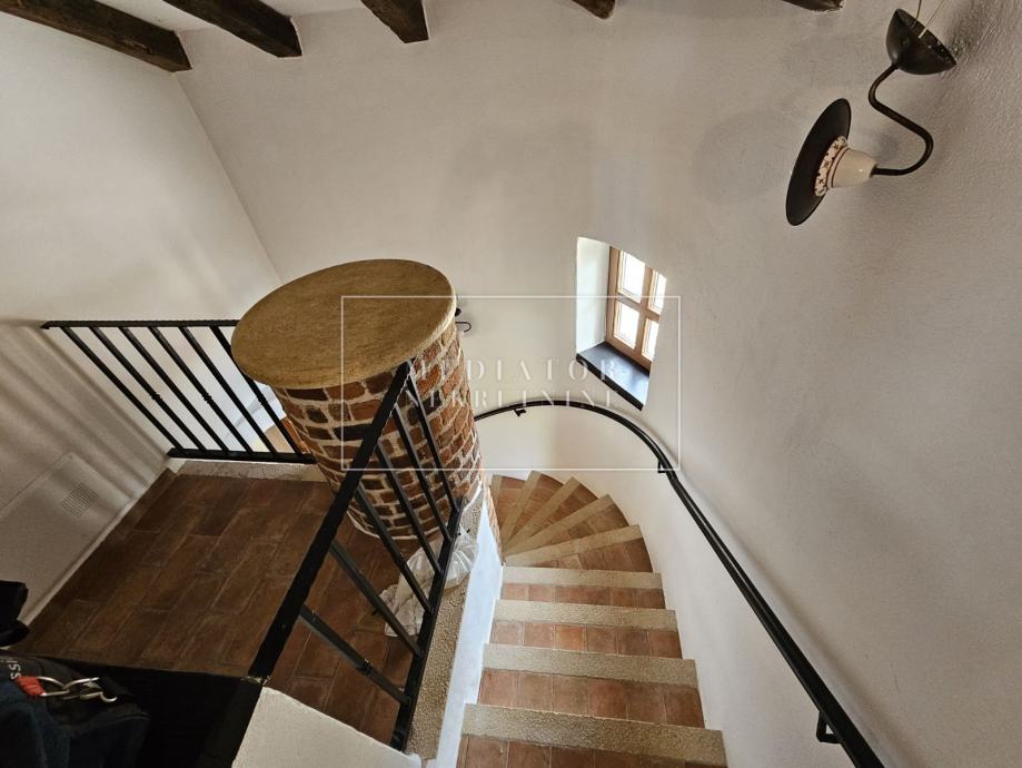 U prizemlju se nalazi prostrani dnevni boravak povezan s moderno opremljenom kuhinjom i blagovaonicom, jedna spavaća soba s izlazom na terasu, kupaonica i dodatni toalet. Na prvome katu smještene su još tri udobne spavaće sobe, svaka s izlazom na balkon, dvije kupaonice te još jedan toalet.