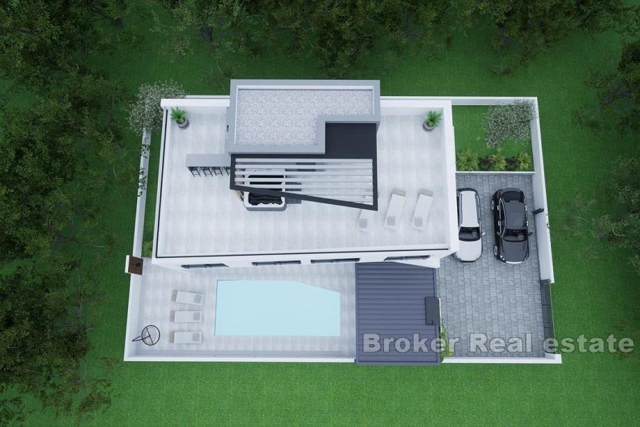 Popnite se na gornju razinu koja pokriva 97 četvornih metara i prepustite se vrhunskom utočištu. Četiri raskošne spavaće sobe, svaka nadopunjena vlastitom luksuznom kupaonicom, pružaju komfor i udobnost. Na krovnoj terasi nalazi se malo spremište i kamin koji upotpunjuju ovaj poseban vanjski prostor koji nudi privatnost i panoramski pogled na more. Na okućnici je smješten grijani bazen od 30 četvornih metara sa sunčalištem, kutak s još jednim kaminom i praktično parkiralište.