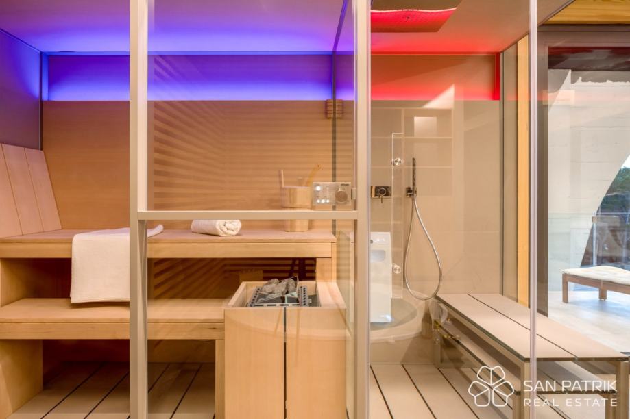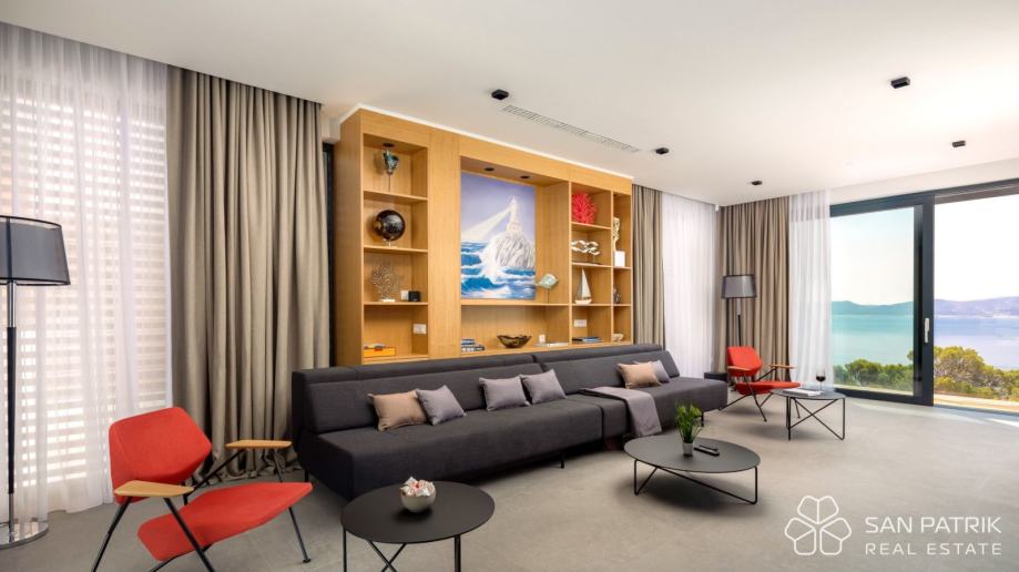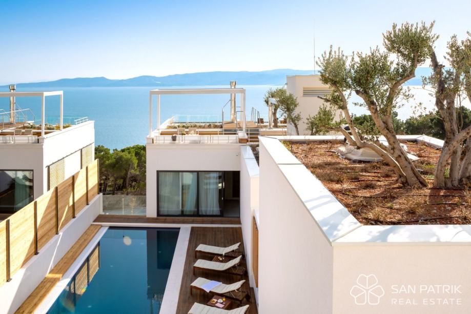 Vila Maestral – prizemlje + 2. kata + krovna terasa – stambena površina 298 m2 (4 spavaće sobe + 3 kupaonice + 7 terasa + wellnes zona + teretana + bazen + krovna terasa) + 8 parking mjesta = 1.900.000 EUR