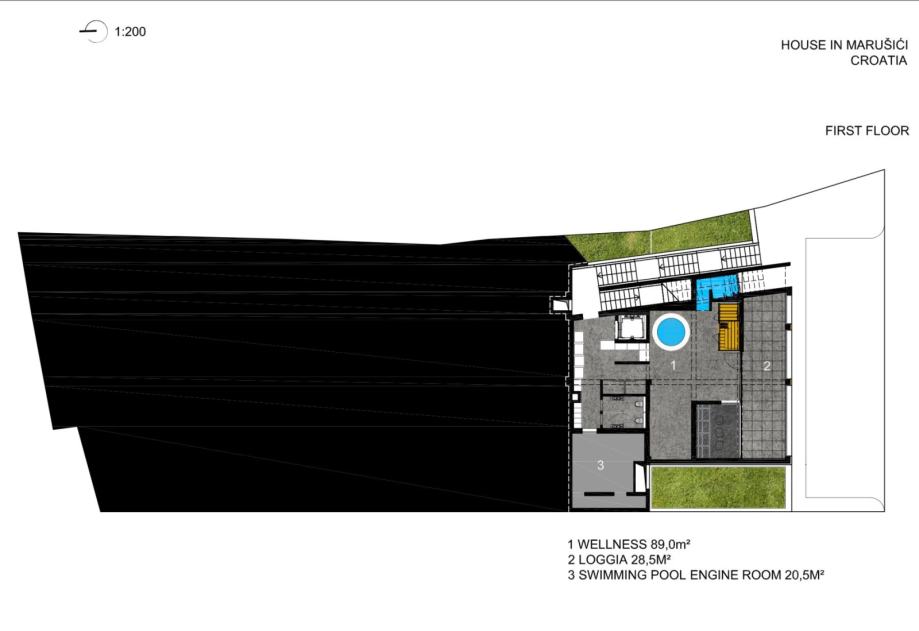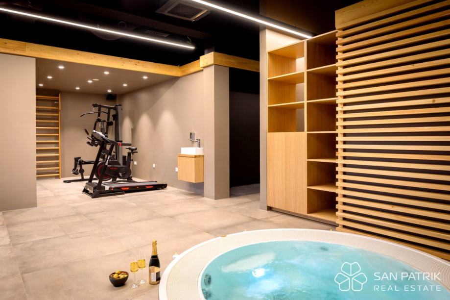 Prvi kat nudi wellness iskustvo koje zadovoljava najviše standarde. Doživite spa u vlastitom domu s hamamom, saunom, i doživljajnim tušem koji obećavaju potpuno opuštanje. Hidromasažni jacuzzi za šest osoba i prostor za opuštanje stvoreni su za bijeg od svakodnevnog stresa, dok vas teretana s najmodernijim spravama čeka za vašu rutine vježbanja.