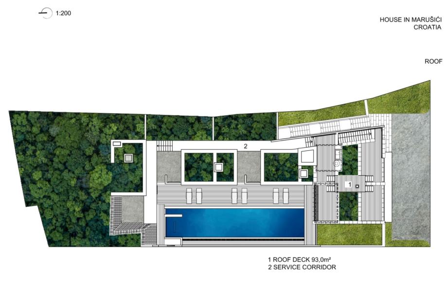 Vila Maestral – prizemlje + 2. kata + krovna terasa – stambena površina 298 m2 (4 spavaće sobe + 3 kupaonice + 7 terasa + wellnes zona + teretana + bazen + krovna terasa) + 8 parking mjesta = 1.700.000 EUR