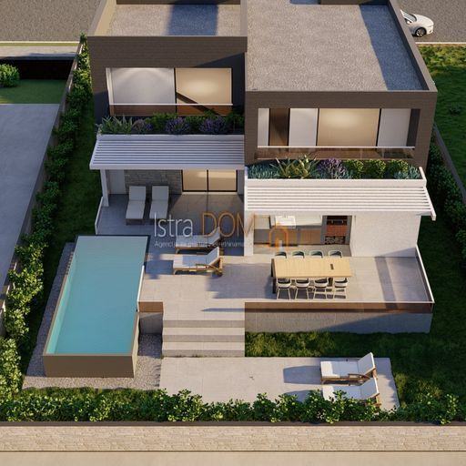 Projektirana po sistemu "ključ u ruke", kuća je u fazi izgradnje i ima ukupnu neto površinu od 230m² raspoređenu na dvije etaže.