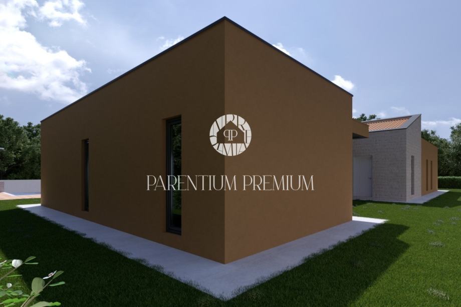 U okolici Poreča, u mirnom naselju svega par minuta od svih bitnih sadržaja kao što su trgovine, pošte, banke, vrtić, škola i slično, biti će smještena ova prizemnica modernog dizajna.