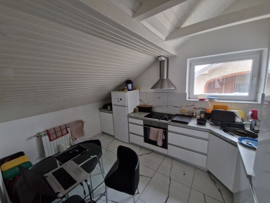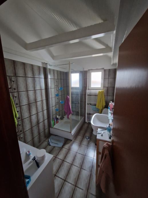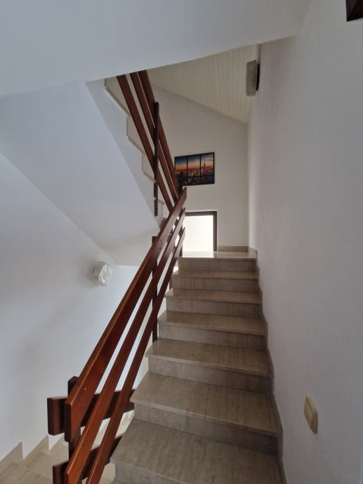 U potkrovlju se nalazi dvosoban stan sa hodnikom, kupaonicom, kuhinjom s blagavaonicom i ostavom, te spavačom i dnevnom sobom. Potkrovlje ima odvojena brojila za struju, subrojilo za vodu te je grijanje zajedničko.