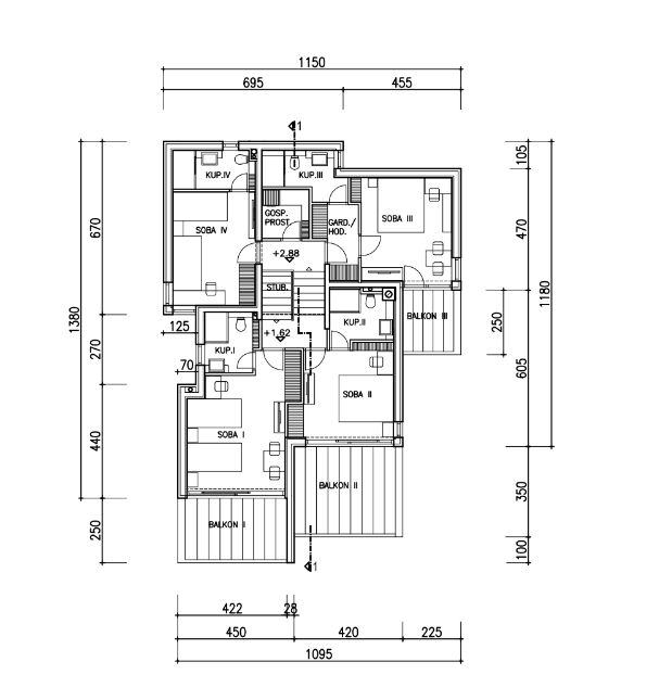 četiri spavaće sobe od kojih tri imaju svoj izlaz na balkon